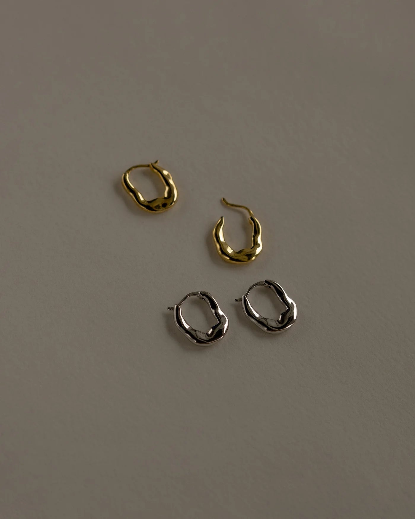 UNA銀色扁平不規則環形耳環